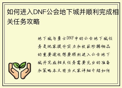 如何进入DNF公会地下城并顺利完成相关任务攻略